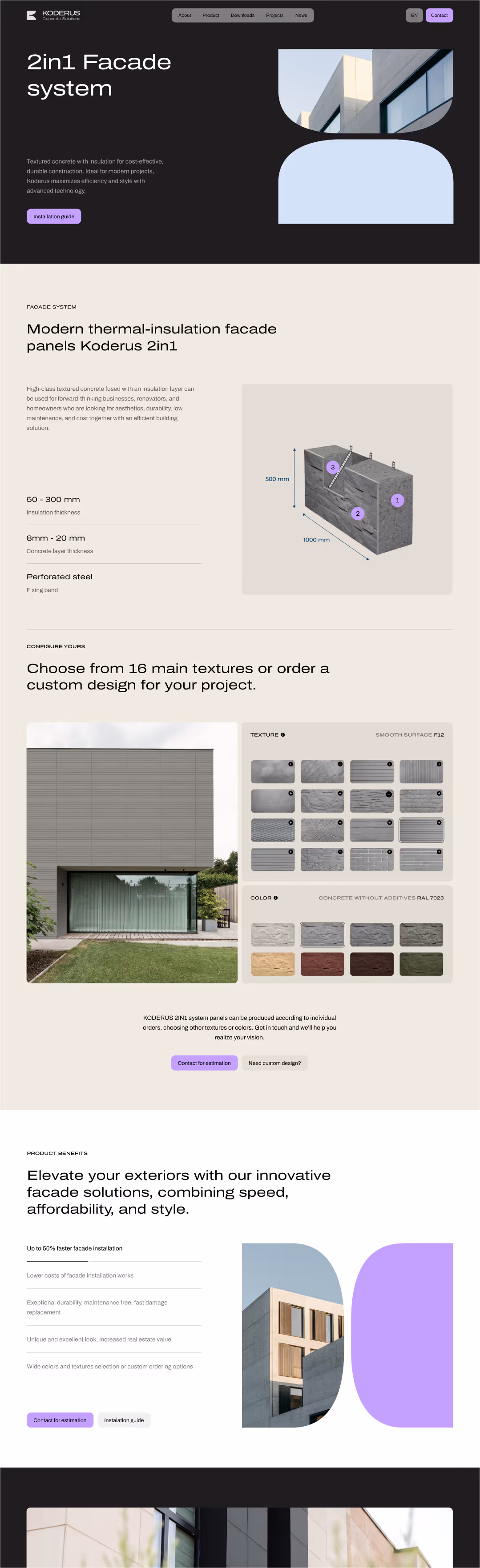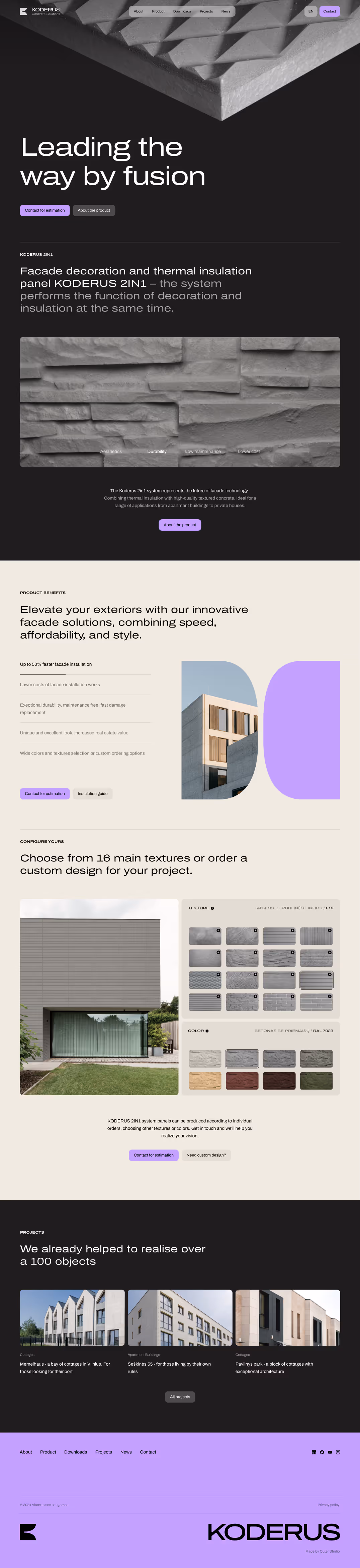 Outer Studio partnered with Koderus to develop a modern, responsive website that highlights their cutting-edge concrete facade systems. As a manufacturer of durable and sustainable facade solutions, Koderus required a digital platform that not only showcased the unique benefits of their products but also reinforced their position as an industry innovator.